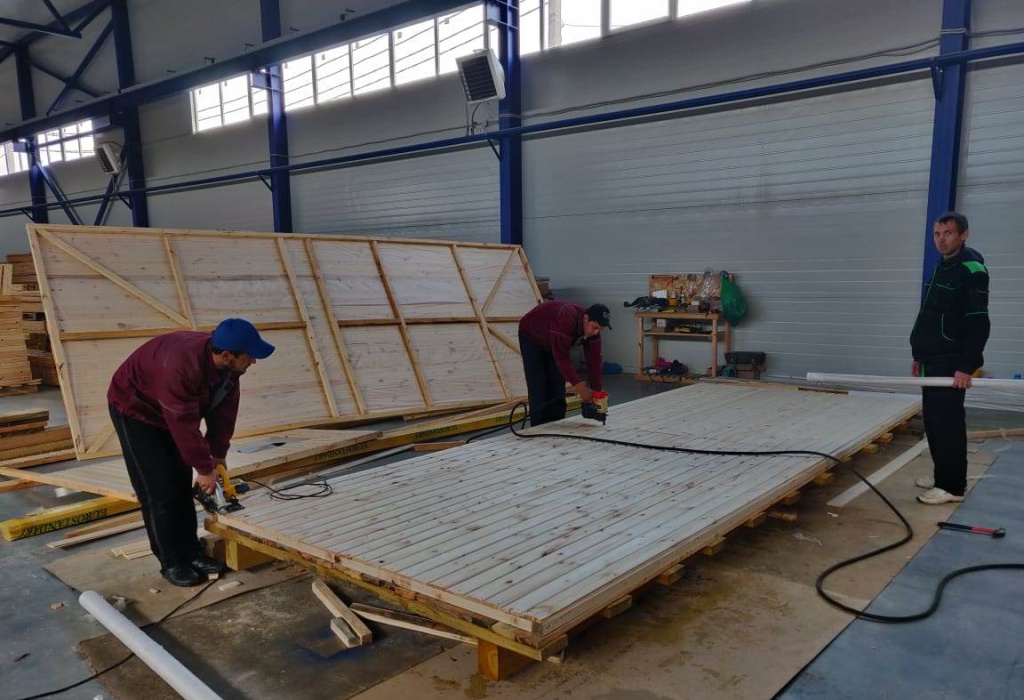 У нас большого размера крытый производственный цех, площадь которого позволяет собирать несколько конструкций одновременно и независимо от погодных условий, работа не останавливается не на минуту. В штате компании всегда работают высококвалифицированные специалисты, разделенные на бригады, благодаря этому нам удалось наладить процесс сборки так что простоев в работе нет и процесс изготовления занимает минимальные сроки.